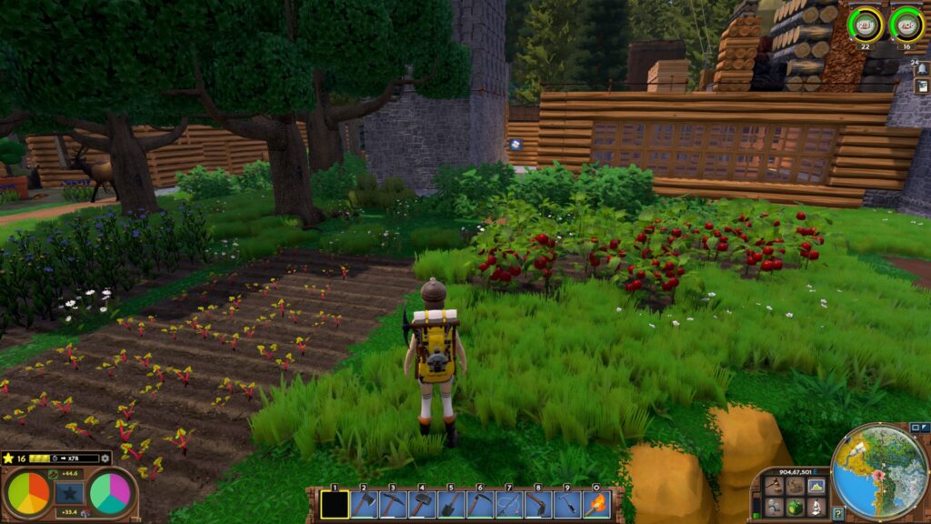 御覧のように、家庭菜園くらいのサイズしか農地が作れません。これでは一人分の食料を賄う程度しか生産力はないでしょう。しかし現実も似たようなもので、砂漠地方では農業は難しいです。寒冷地方でもやはり難しいと思います。過去それで多くの戦争が起きたりしていたのが現実世界なのですが、今でもその問題はあまり解決していない気がしますね。
