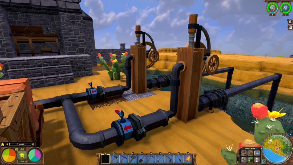 鋼鉄文明がやってくる 2026年3月10日 日記 記録 鉄器文明から、機械文明になり、「高度な精錬」の技術へ道が開けたことで、いよいよ鋼鉄を作れるようになります。鋼鉄を作るには高炉が必要になるのですが、このあたりから徐々に近代化してゆくのかもしれません。 ただ前回の記事にも書いたように、あまり急かして進む気もないので、ちょっとずつですね。 それはそうと、ポンプが動作しているのを見てるだけでも、なんか楽しいです。