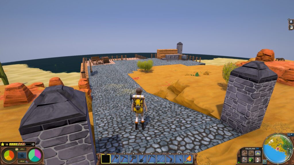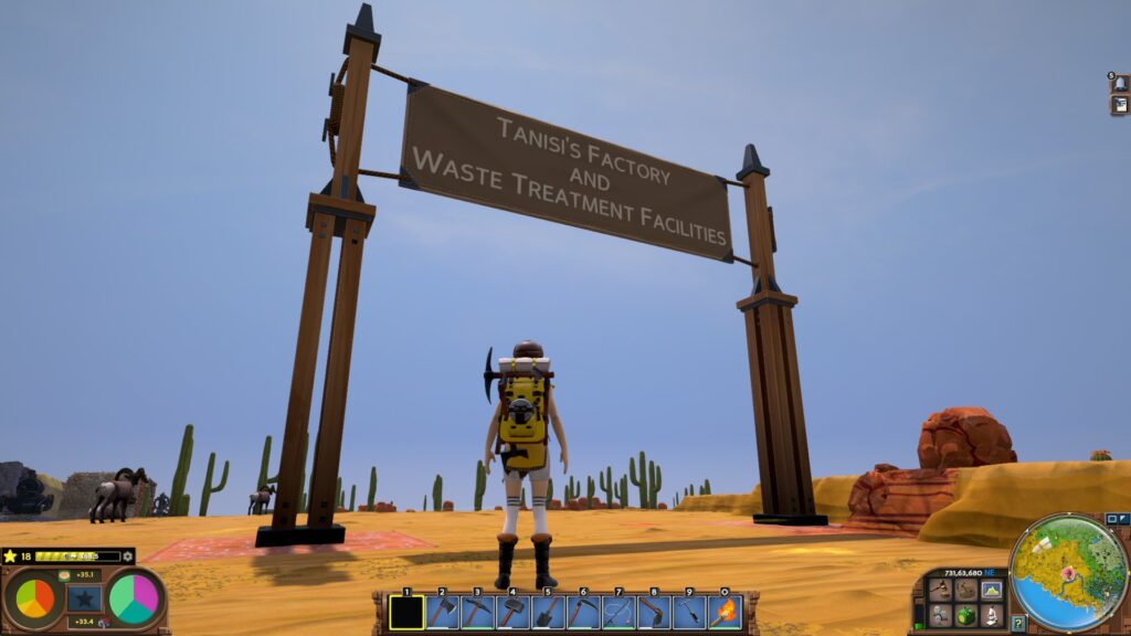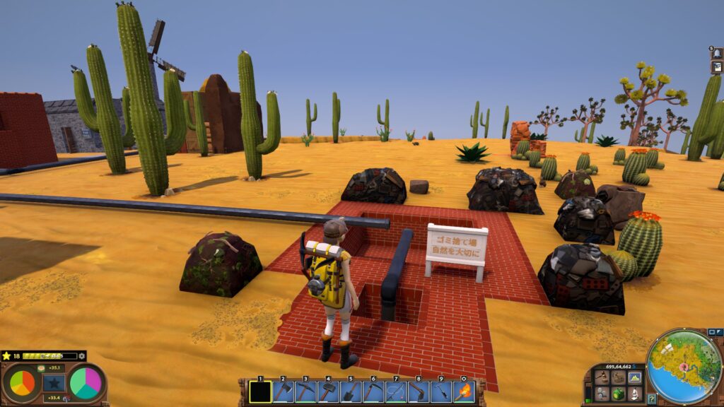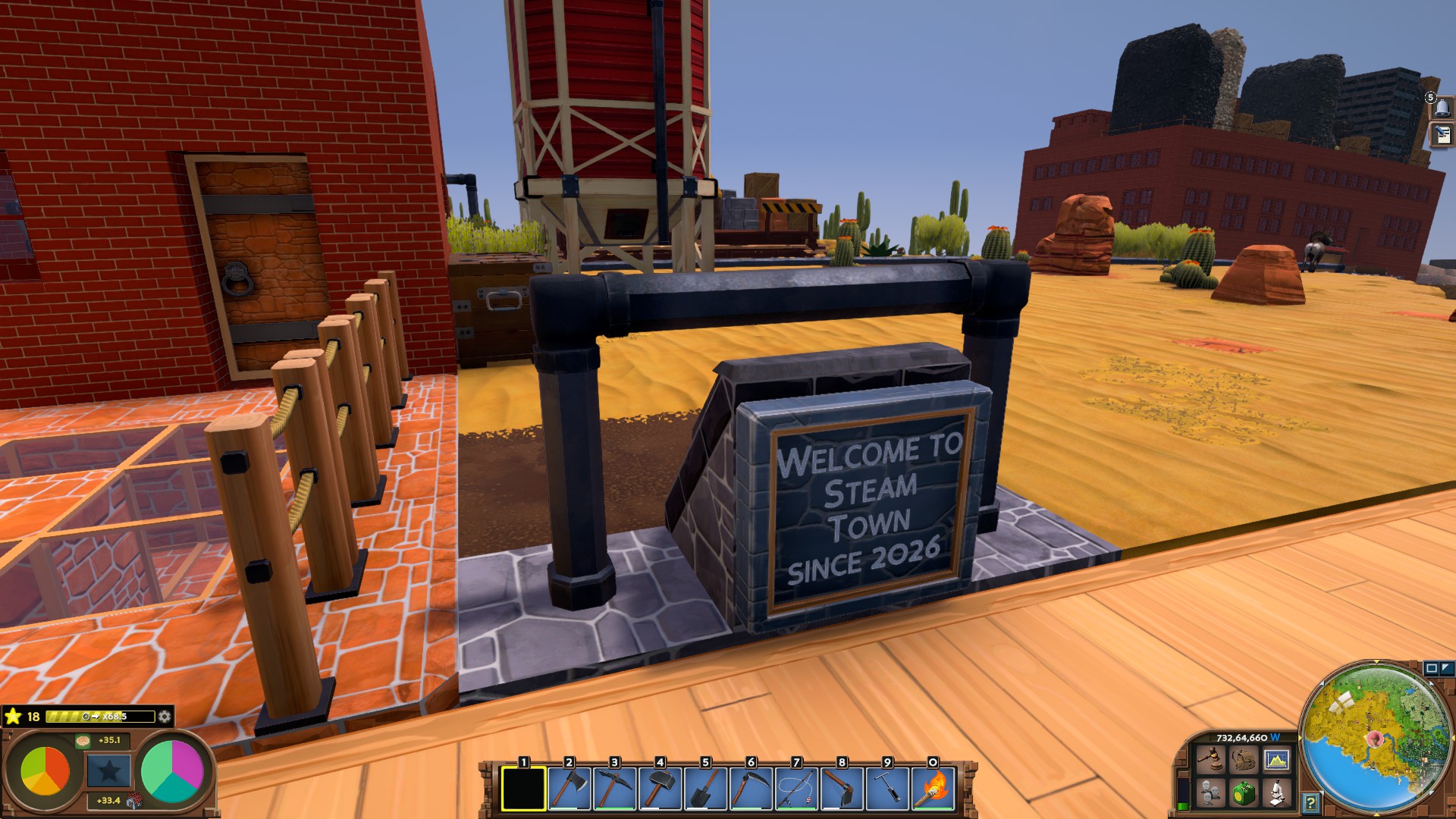 砂漠の町 2026年3月12日 日記 記録 少しずつ、町のようなものができてきたため、この土地にも名前を付けました。 Steam Town です。 蒸気機関で発展してきた場所なので、こういう命名になりました。EVERTONが森の町なら、こっちは砂漠と工業の町って感じです。いずれEVERTONも再開発するかもしれないですが、静かな街並みを、そのままにしたい気持ちもありますね。 ゴミ捨て場があったり。 南の海岸には、建設中の港もあります。 Tanisiさんのお作りになった工場と廃棄物処理施設にも、でかい看板を付けてみました笑